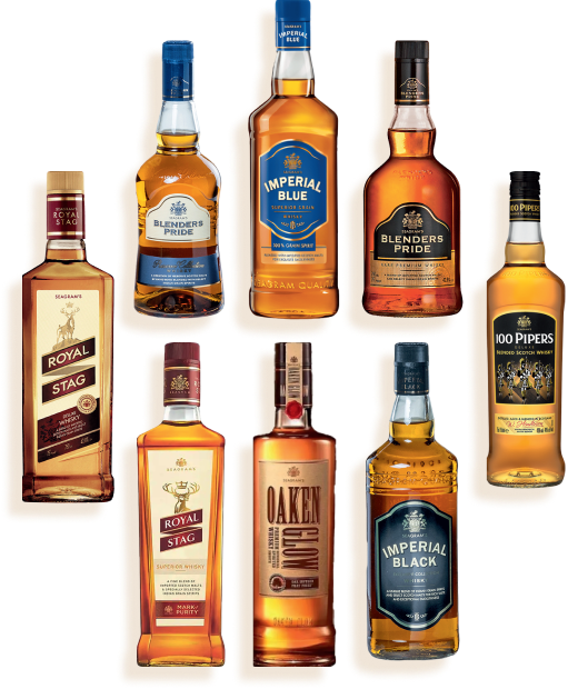 We blend and bottle brands such as Imperial Blue, Imperial Black, Royal Stag, Royal Stag Barrel Select, Blenders Pride, Blenders Pride Reserve Collection, Oaken Glow and Hundred Piper.